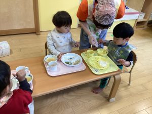 最初は難しそうにしていた子も、繰り返し挑戦する中で少しずつ上手になり、「自分で食べられた!」という嬉しそうな表情も見られるようになってきました☺️