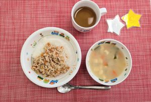 サンライズキッズ保育園 ◎給食の様子 今日の給食は、鶏そぼろあんかけ丼と五目汁でした。 食べやすかっ...
