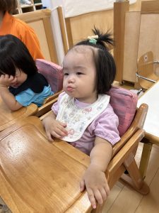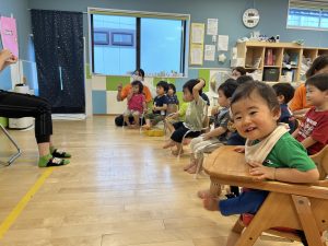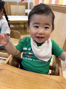 初めての誕生会でしたがたくさんのお友だちの前に出ても泣かずご機嫌でした