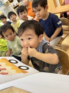 9月生まれのお誕生児さんに前に出てきてもらうと