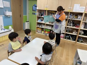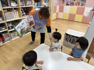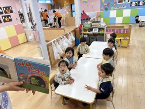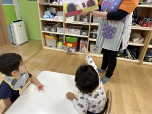 今週は2歳児クラスの朝の絵本タイムの様子をご紹介します![]()