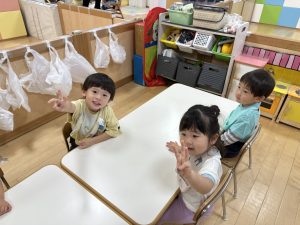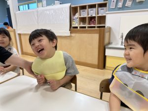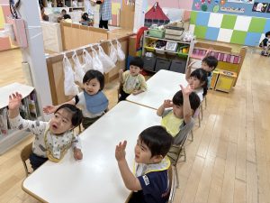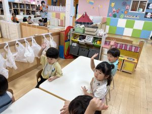 ロボットが出てくるとロボットの動きを真似っこするお友だちも![]()