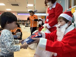 サンタさんがたくさん来てくれたことに驚く子どもたち