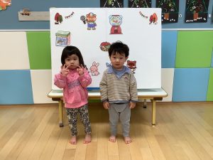 お誕生児さんにお名前と何歳になったかを質問してみました![]()