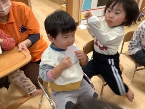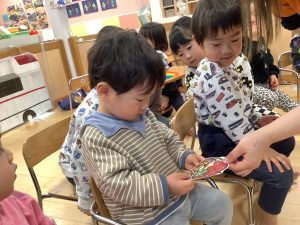 お誕生児さんに上手に渡すことができました![]()