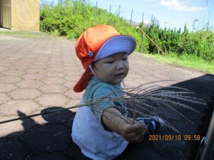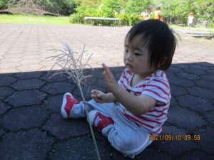 ?ぐみさんは初めて見るススキに興味津々な様子![]()