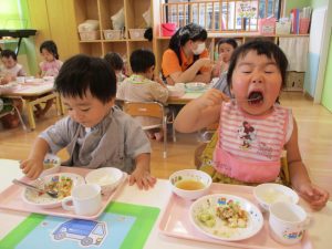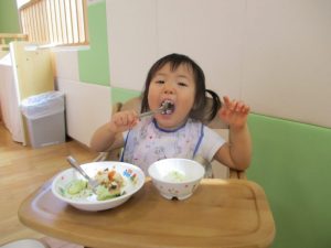 カメラを向けると大きな口を開けてパクパク・モリモリ![]()