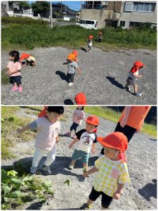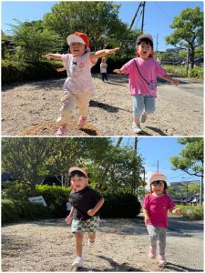 園庭でも元気いっぱいで遊んだもも組さん🍑といちご組さん🍓