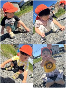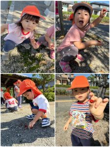 手にいっぱいの石を集めて嬉しそうに見せてくれたももぐみさんといちごぐみさんです😊