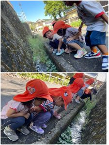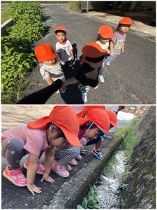保育園横の溝ではザリガニを発見💡