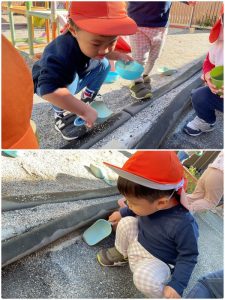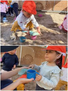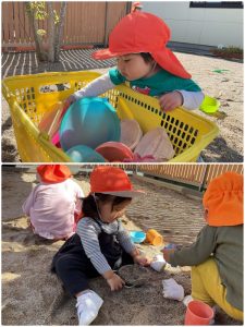 砂場では玩具を探して✨