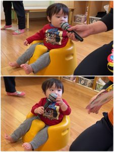 マイクを向けるとマイクに興味津々🎤