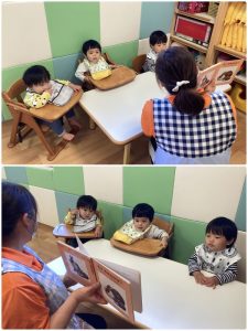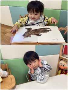 今週の絵本ブログはももぐみさんが「もうおきるかな?」の絵本を見ている様子をお伝えします🐻