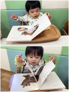 絵本を渡すと動物さんをトントン叩いて起こしてくれる姿も😘