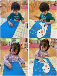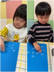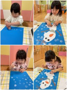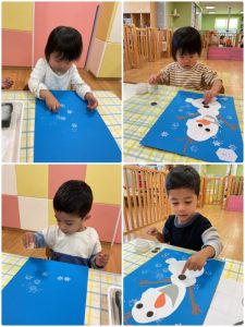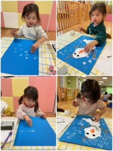まずは雪の結晶のスタンプをぺたぺた🎵
