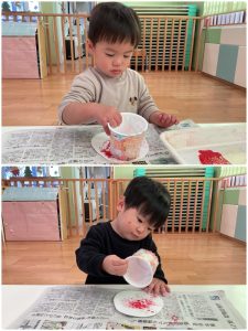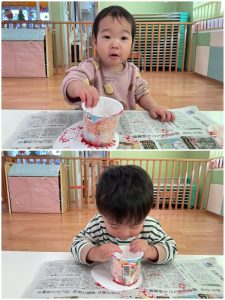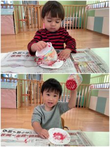もも組さん、いちご組さんもとっても上手に置くことができました👏🏼