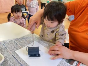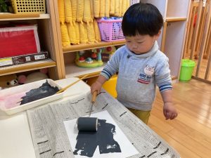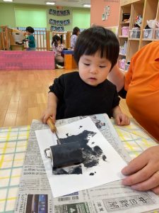 模様がつくと不思議そうにスタンプを見たり☺️