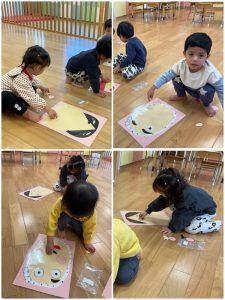 そして、もも組さん、いちご組さん、りんご組さん、みんなで福笑い😗