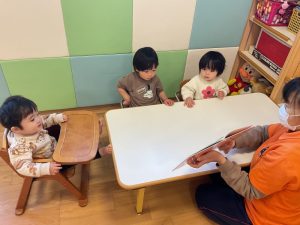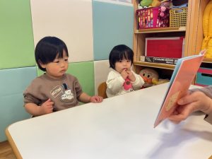 今週の絵本ブログはももぐみさんが「かんぱーい」の絵本を見ている様子をお伝えします🥂