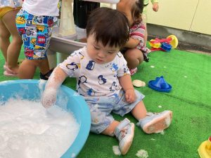 初めは水がちょっぴり怖くて泣いていたお友だちも