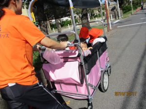 ベビーカーにゆられて気持ちよさそうにウトウトする0歳児さんたち