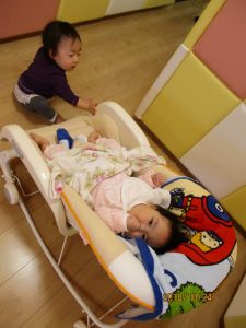 泣いてる声に寄っていってクーハンをゆらゆらしてくれました