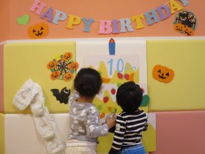 1歳になったお友だちにみんなでハッピーバースデーのお歌をプレゼント?