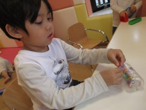 そーっとそーっと・・ビー玉が落ちないようにチャレンジしました!