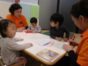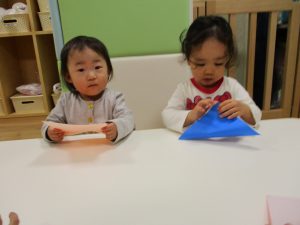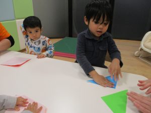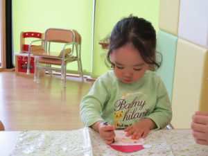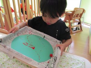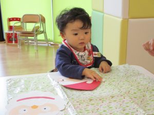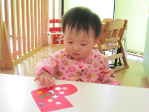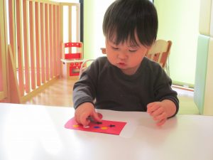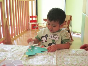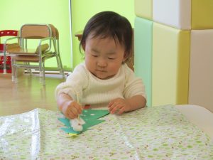 1.2歳児のお友だちも製作は好きでいつも楽しんで取り組んでくれます。