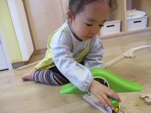 2歳児のお友だちは保育者の手元をじーっとみてから