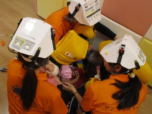いつ来るかわからない地震に備えて保育者たちは真剣です!!