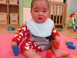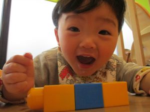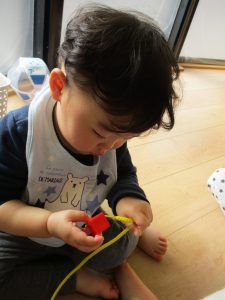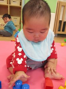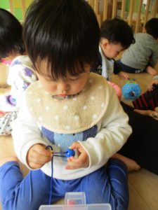 真剣な表情で取り組んでくれているのは、1歳児さん