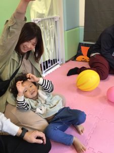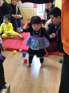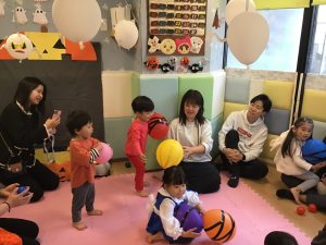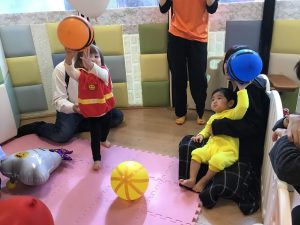 ミイラ風船をポンポン弾ませたり、「ねないこだれだ」のおばけ風船に向かって投げたり♪