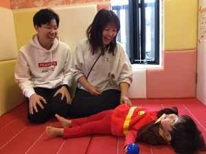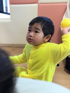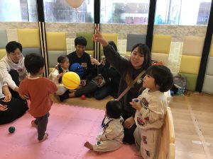 0歳児保育室では「風船ボール遊び」🎈