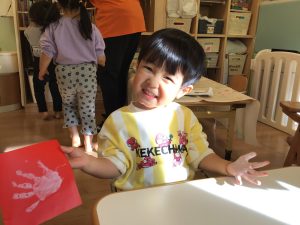 小さな手形がかわいらしく、成長も感じられる作品になっています。