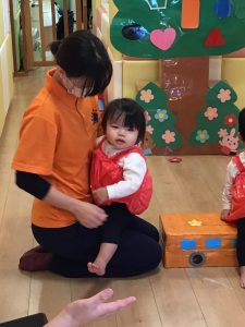 2歳児さんも、名前を呼ばれると元気よくお返事をして前に出てきてくれました😊