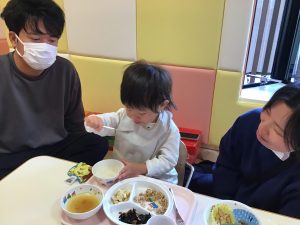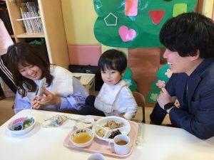 お父さんお母さんと一緒に食べる給食に、子どもたちもにこにこ笑顔💕