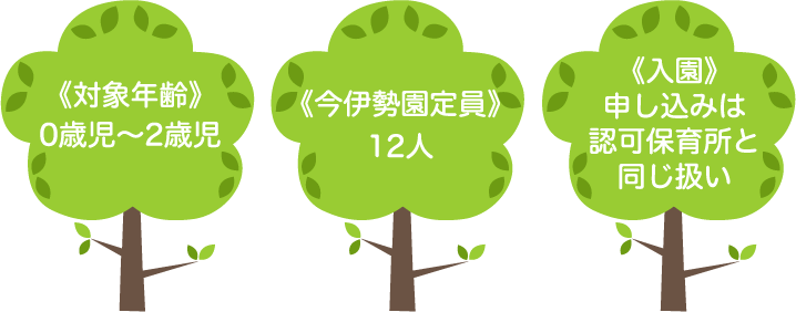 - 12名 〈内訳〉 0歳児 3名 / 1歳児 4名 / 2歳児 5名