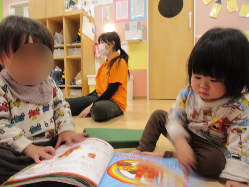 こんにちはサンライズキッズ保育園松本園です。今回は、いちごぐみさんの子どもたちが絵本を読…