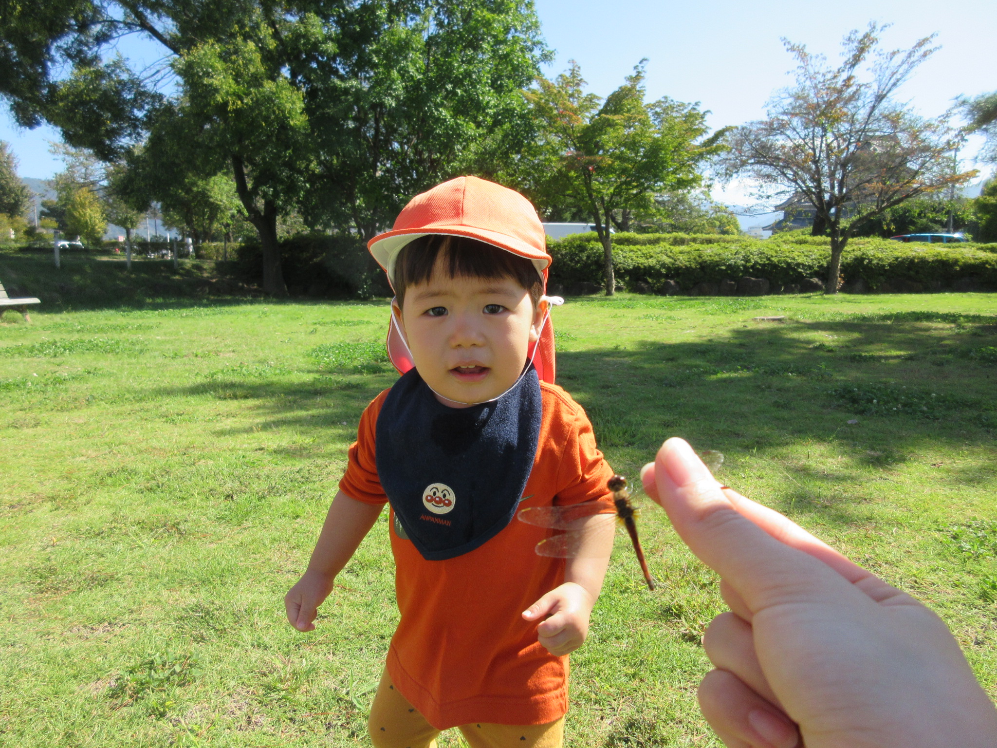 中にはとんぼが怖いようで、少し遠目に見つめたり、カメラの画角外から「や〜」と言って走って逃げていた子もいました![]()