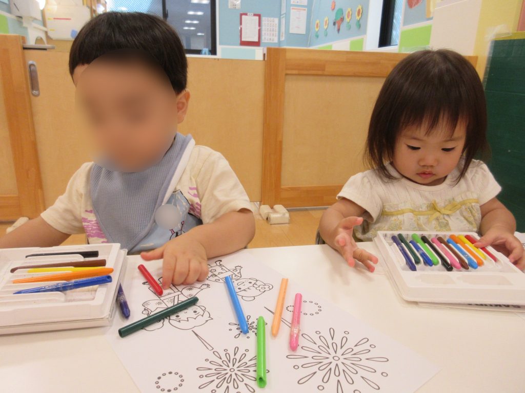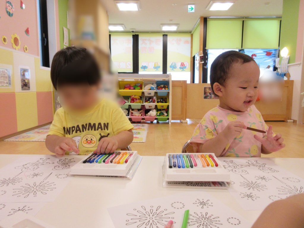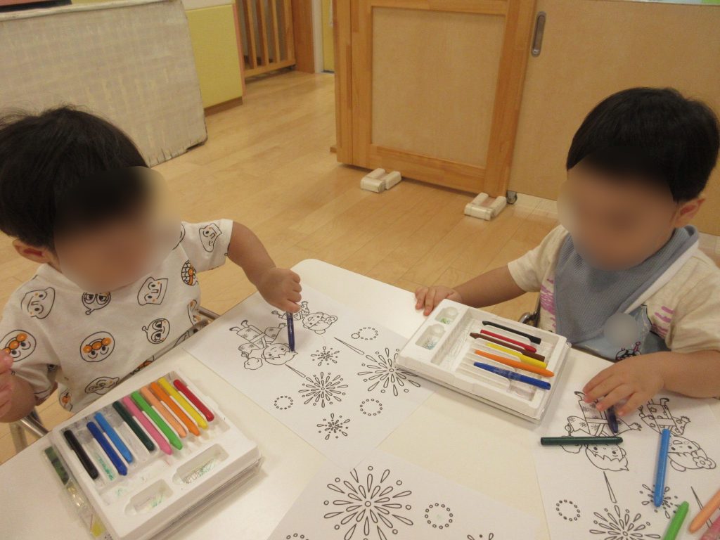 そんないちご組さんは、花火の塗り絵に挑戦してみました🎆