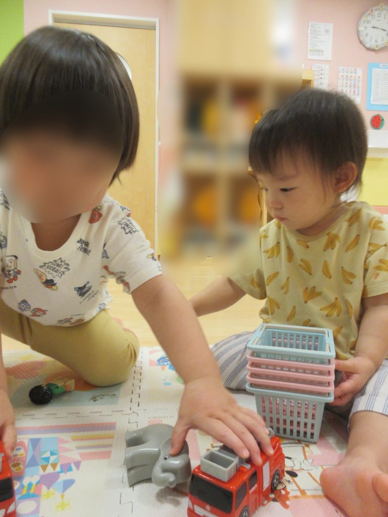 他にもお部屋では車や電車、おままごとなどの遊びを楽しむいちご組さん。