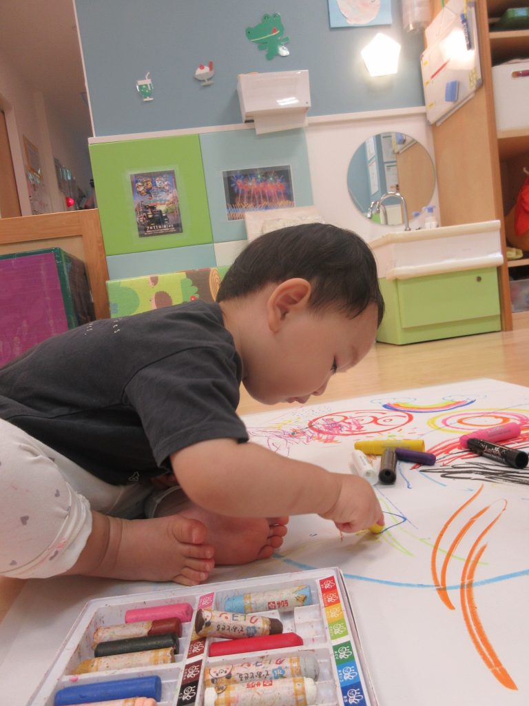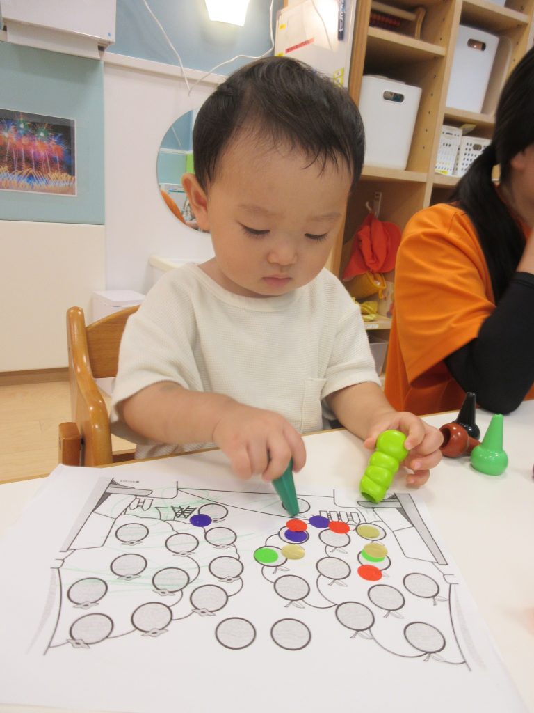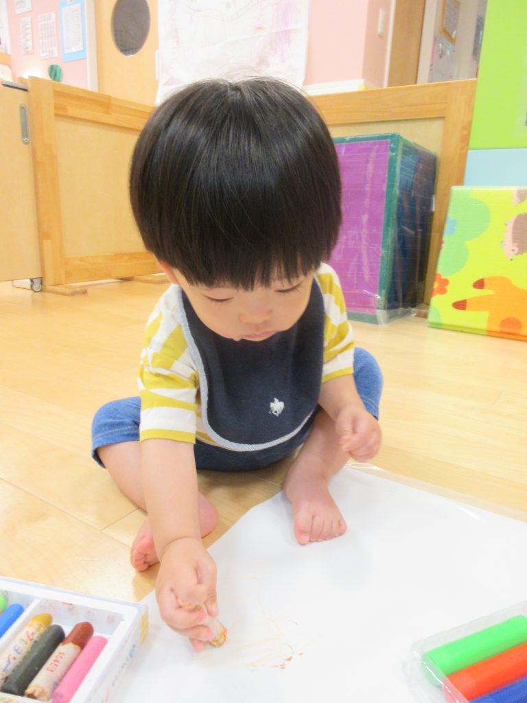 初めて使うクレヨンでしたが、上手に持って描くことができていましたよ!
