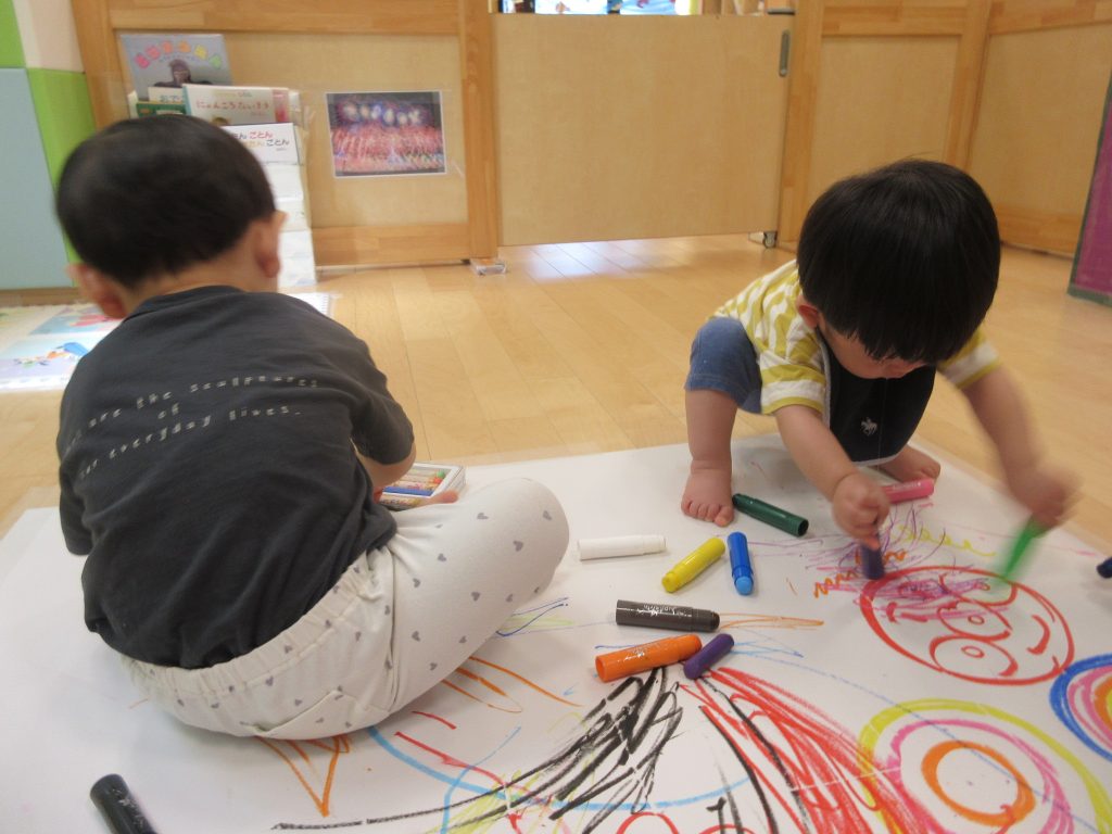 この翌日には、大きな模造紙にクレヨンでお絵描きもしました!