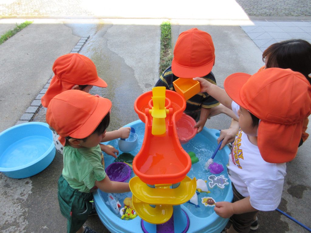 みんなで1つのウォーターテーブルを囲んで遊んでいる姿がとても可愛かったです![]()