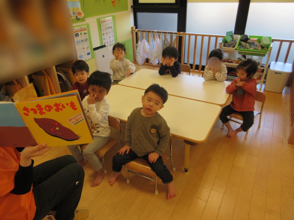 午睡前の絵本でも「さつまのおいもよんで〜!」と持ってきてくれる子も多く、子どもたちも大好きな絵本です。