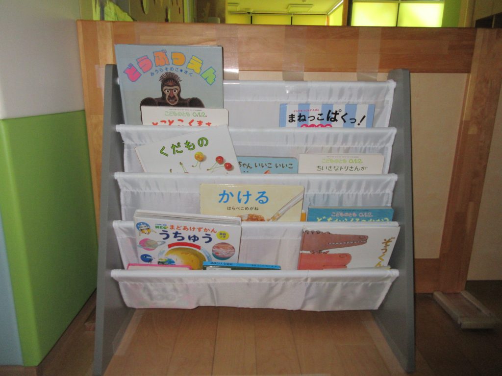 沢山絵本も増え、玩具も子どもたち自身が選び、遊ぶことができるようになって子どもたちも嬉しそうですまた、片付けも子どもたちが自分で手を伸ばしてできる高さになりました。