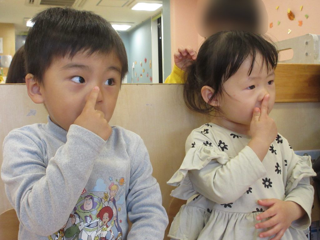 最後に「シーッ」と人差し指を口元に当てるポーズをすると、「ばすにのるときはしずかにしないとだよね」と教えてくれるお友だちもいましたよ![]()