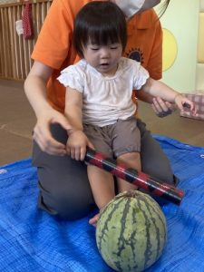 保育園のお友だちみんなでスイカ割りをして楽しみましたよ😌