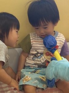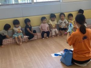 0歳児もも組さんのお友だちも保育者と一緒に頑張りました😊